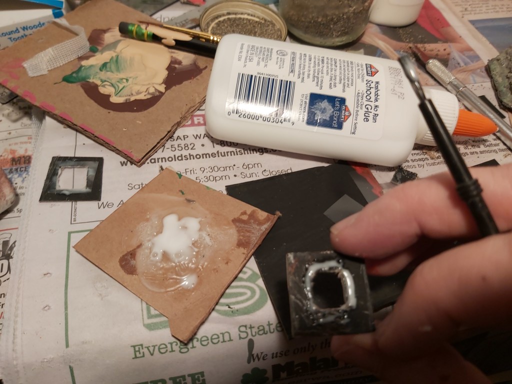Tools: ruler & markers, scissors, paintbrush, and a sharp knife. Be careful with sharp tools.