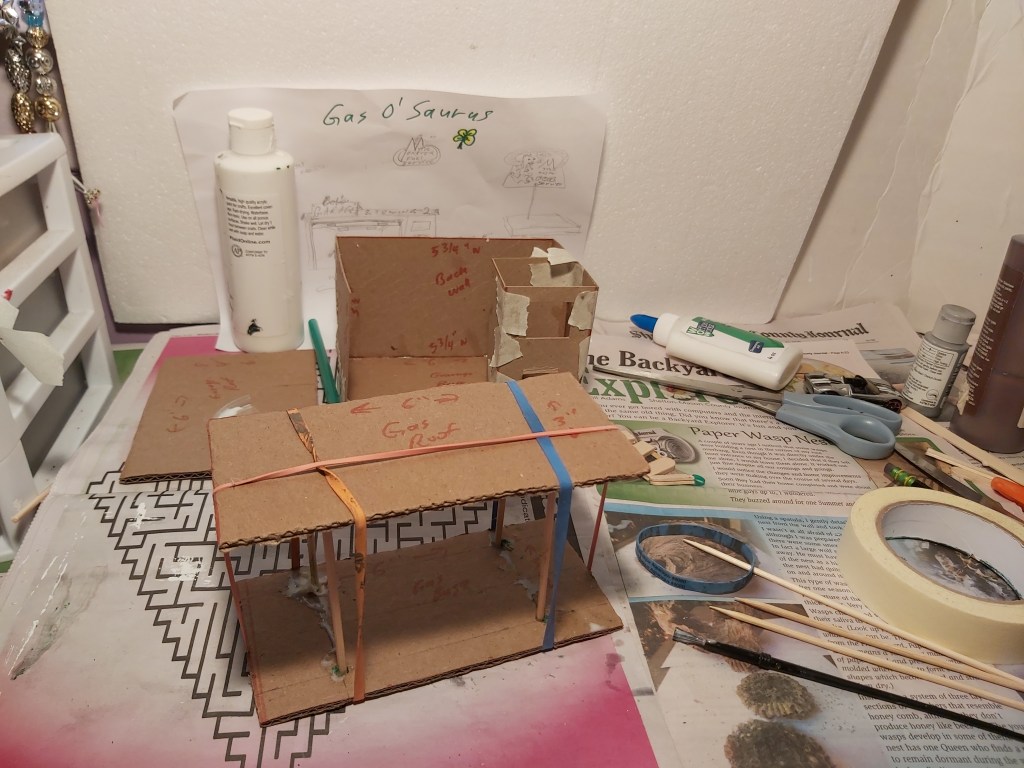Glue windows on, finish details and enjoy! You can invent a fun brand and mascot like I did with Gus, the friendly Gas O’Saurus T-Rex bagpiper.