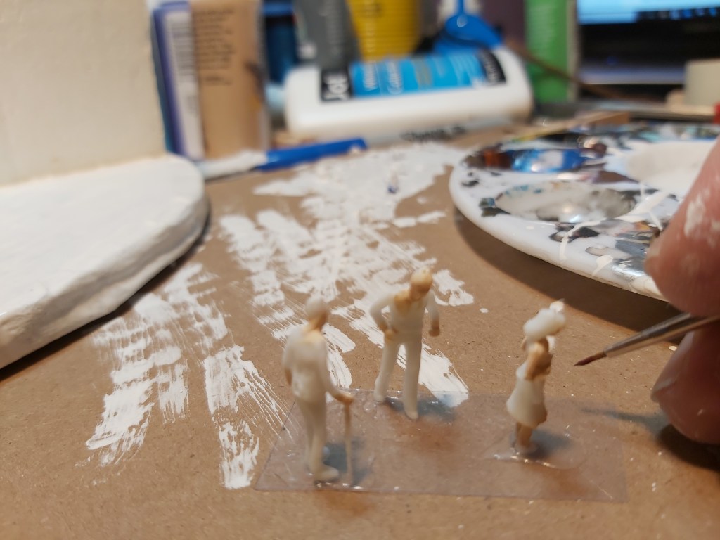 Add beads of glue along edges and seams. Drop handfuls of sand on the wet glue and shake off the excess. Repeat, one side at a time. You can add detail in the wet glue/sand using the back of a paintbrush. Let dry, then paint the entire structure with a mix of 50% white glue to white paint. Let dry. You will need 2-3 coats of paint.