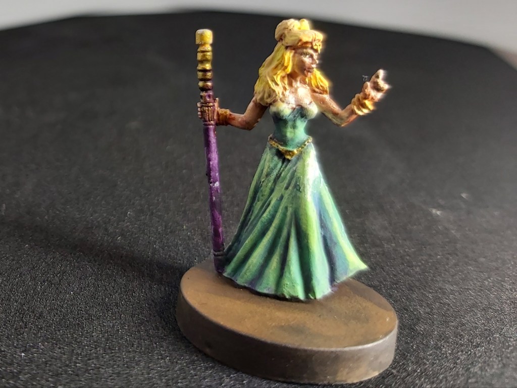 Most people (including me) think of white as the main highlight color. I recently learned the importance of yellow from an art teacher. Figure sculpts by Reaper Miniatures of Texas. I painted these figures during the Reaper Virtual Expo earlier this month.
