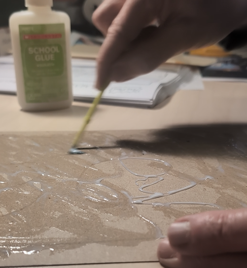 Materials: cardboard, school glue, acrylic paints